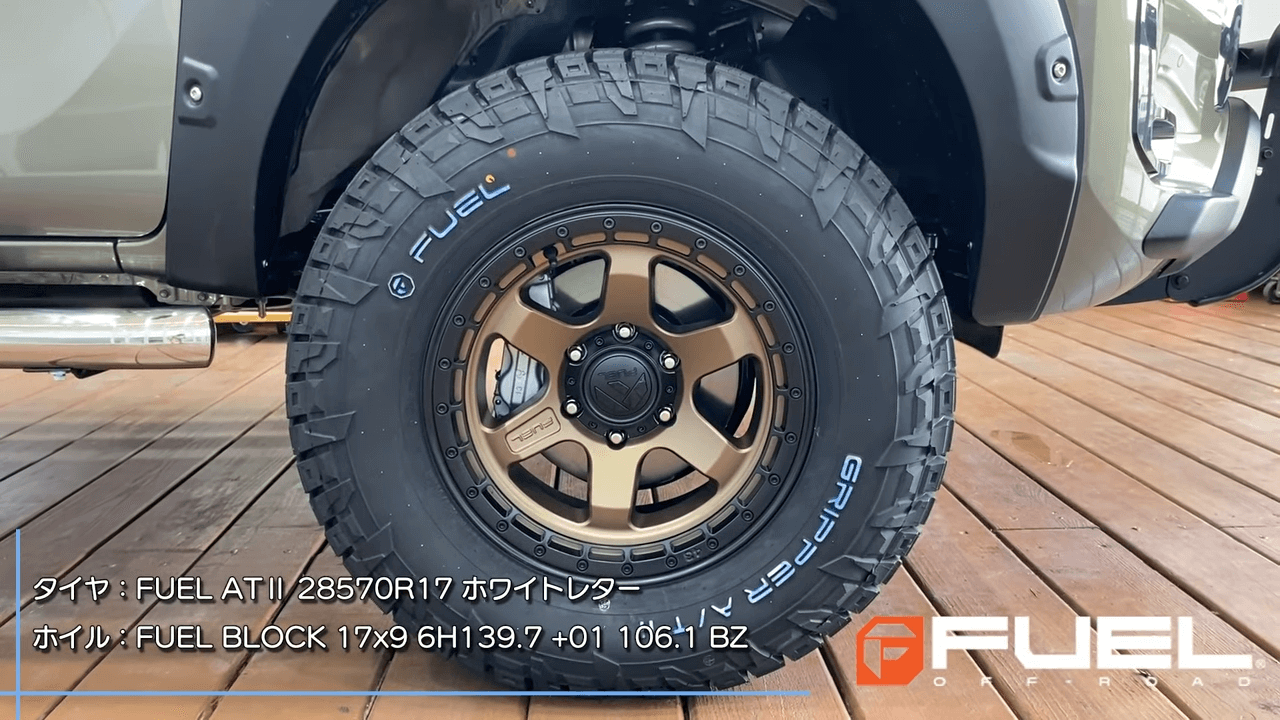 FUELのタイヤ・ホイールはオフロード感が強いバンパーガードと合わせればカッコいいこと間違いなしです。