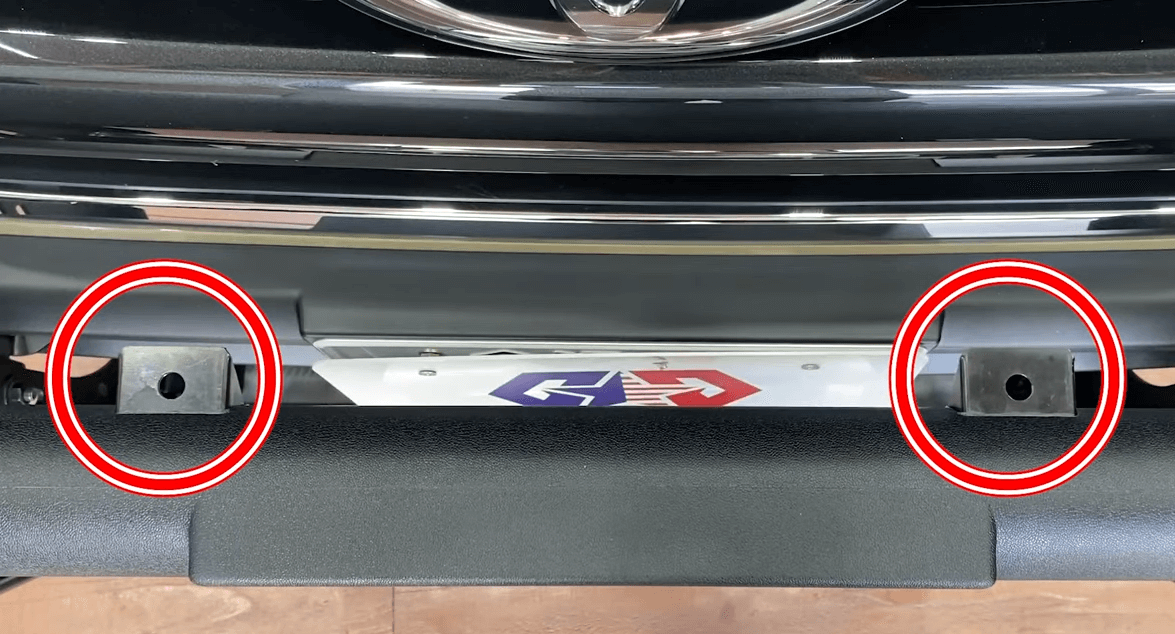 フォグを取り付けるためのステーも2つ付いているので、doloncoおすすめのLEDフォグも取り付け可能です。ナンバープレートが見えるように隙間もあるので、車検の心配もありません。