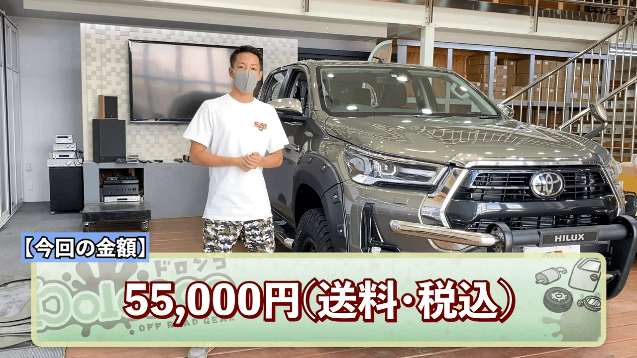 送料税込で55,000円とお手頃で前期後期両方に対応しているので、ハイラックス乗りにはおすすめの商品です。ただし、取り付けはディーラーさんに依頼することをお勧めします。