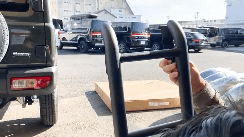 ジムニーのリアラダーを取り付けていきます。ジムニーのカスタムパーツはほかの車種と比べても簡単に取り付け出来るものが多いです。その中でもリアラダーは取付が簡単なパーツなので参考にしてみてください。