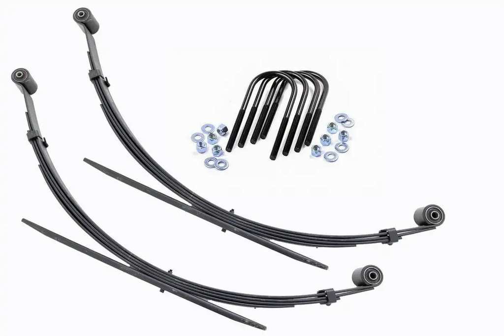 | 商品内容 | 交換用 リアリーフスプリング 4インチリフトアップ車用(長さ:132cm 幅:7.6cm バネレート:547kg) |